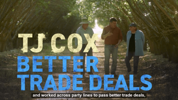 The ad highlights TJ Cox’s ability to work across the aisle to get things done in the Valley. He pushed the House to improve and pass the USMCA, which benefits Valley farms.